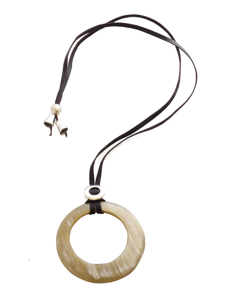 UBU Beige Horn Ring/Chocolate Leather with Silver Plate Necklace