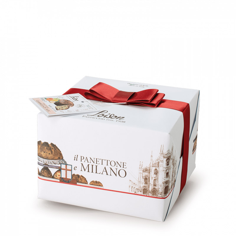 Loison’s Top Quality Line Classical A.D. 1476 Panettone has been given a new twist with this sleek packaging. The Classic Panettone is a part of Loison's Top Line of Panettone, characterised by natural vanilla, fresh milk, cream and butter. A naturally leavened product, with the typical shape of panettone, the surface having been cut with a cross. The yellow dough is made with fresh milk, butter, cream and natural Madagascar Vanilla* and is enriched with Sultana Raisins and Candied "Oranges from Sicily" and "Citron from Diamante- Calabria" peels.