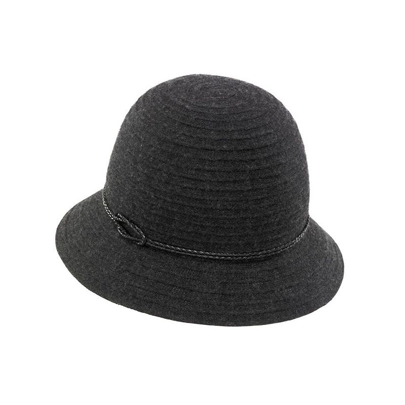Rollable and packable Short Brim Cloche in a luxurious wool and cashmere combination. The plush yarns are knitted together into a tubular braid around a flexible mesh that provides flexibility and resilience. The combination in this lovely cloche of a darkness crown and brim with a splash of colour from the seaport band and ink leather strap trim makes it perfect to coordinate with just about everything in our autumn winter colour palette. The image of the plain darkness hat illustrates the shape from above.
