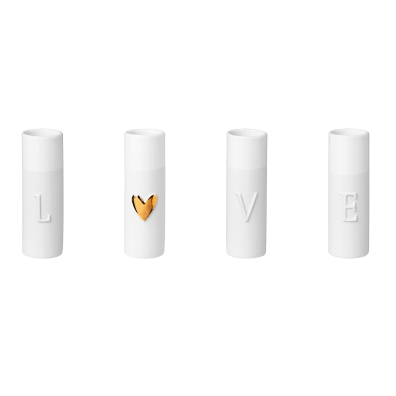 A gift that never fades. Four small handmade vases that spell out L O V E for roses, tulips, carnations, for forget-me-nots or whatever takes your fancy.