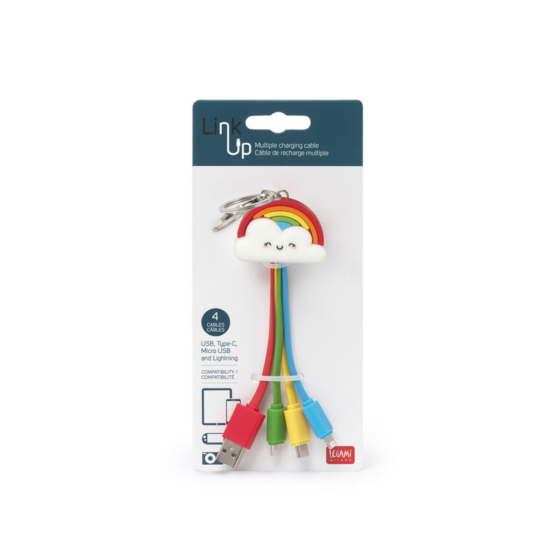 Too many cables to remember when you leave the house?  To prevent this from happening again, carry the Link Up - Rainbow with you, the perfect multiple charging cable for any of your devices.  Practical and portable, it allows up to 3 devices to be recharged at the same time (If used simultaneously the charge speed decreases).