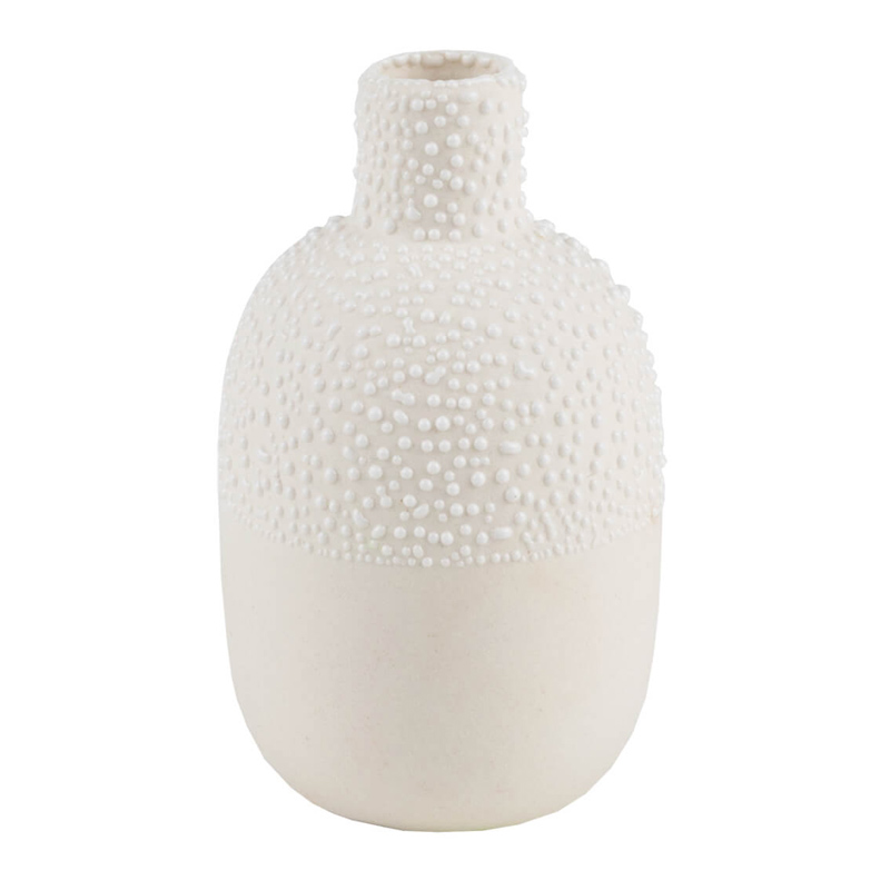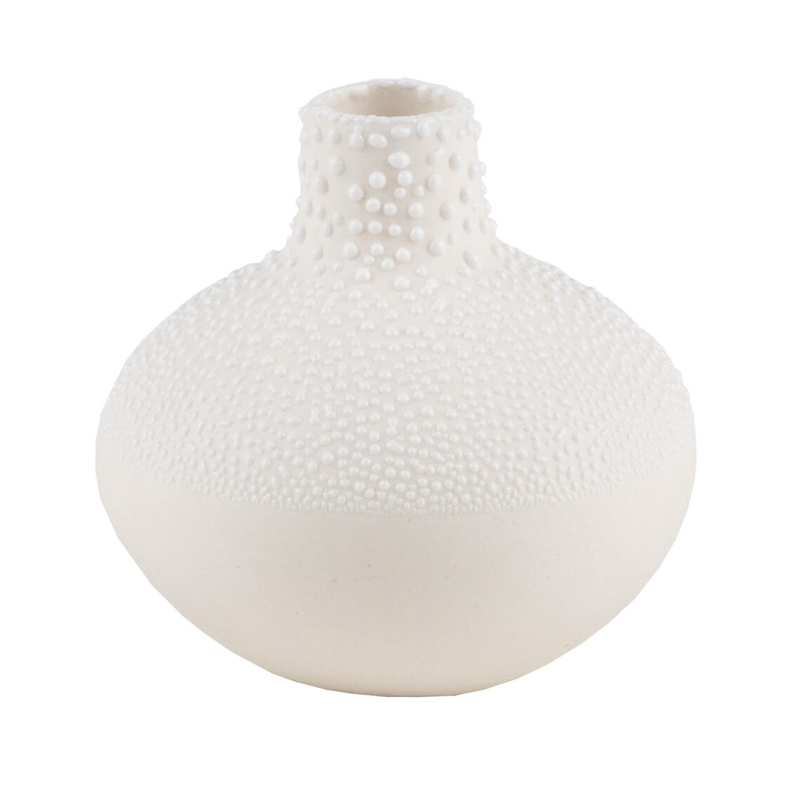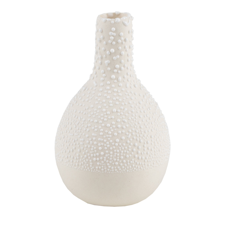 Three little vases, ideal for small flowers like snowdrops, violets or narcissi. Stoneware, matt outside with pearl glaze, glazed inside.