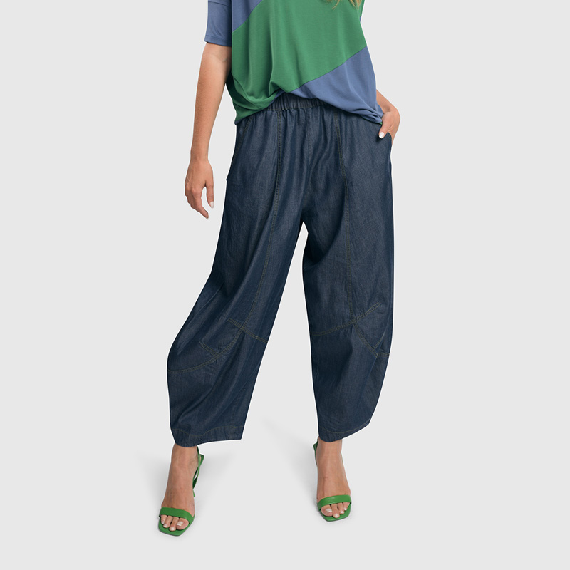 Relaxed chic in a roomy, wide leg silhouette that's tailored with unique detailing at the architectural hem. Wear with heels or slides.