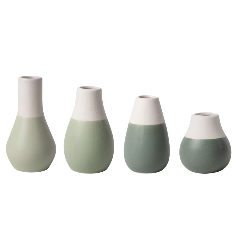 Glazed mini stoneware vases. The matt glaze is applied by hand so each vase is unique.