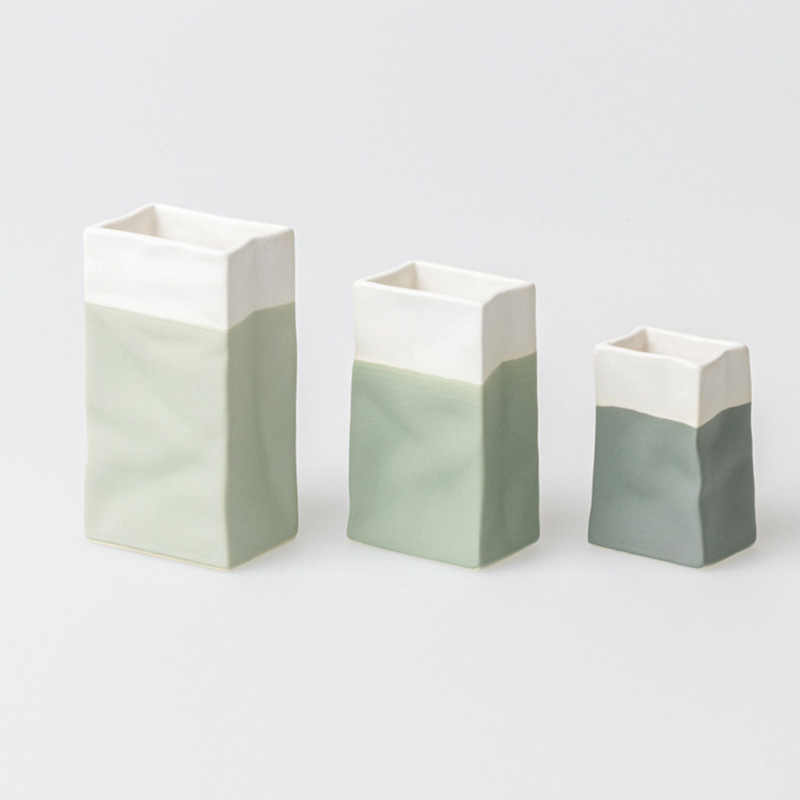 Raeder Mini Porcelain Bag Vases. Green. Set of 3