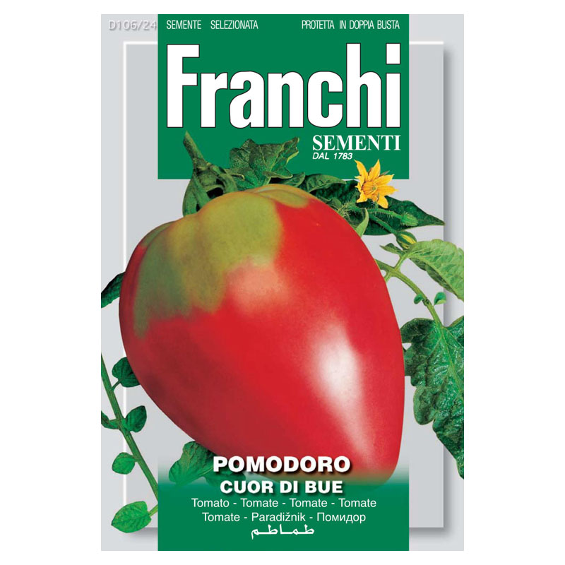 T10 - Recommended By Raimond Blanc (Le Manoir aux Quat'Saisons) on BBC Gardeners World 20/04/07. "Superb tasting and fleshy" - Joy Larkcom, The Guardian Weekend 15/03/03. 'Ox Heart' beef tomato, so called because of its size and shape. A lovely slicing tomato due to its meaty flesh, and few seeds. Unbeatable in salads or with slices of fresh Mozzarella and basil Genovese. Indeterminate.