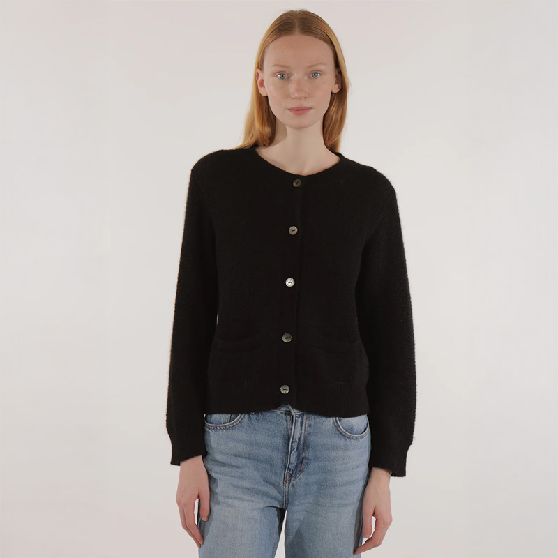 Chic and warm, this embossed-stitch knit jacket combines comfort and elegance. Its five-button closure underlines its timeless look, while its soft, textured knit gives it character and refinement.