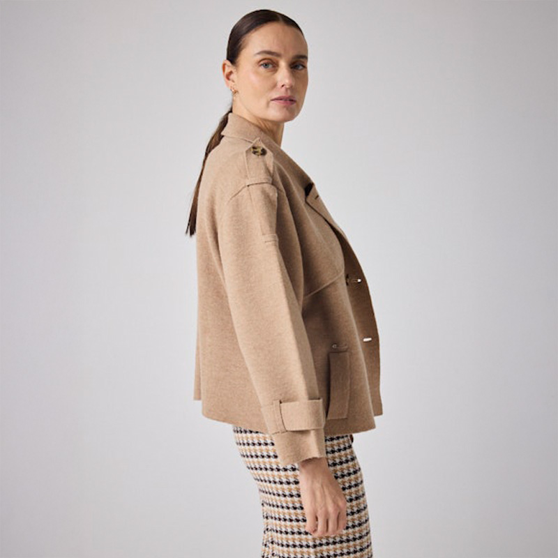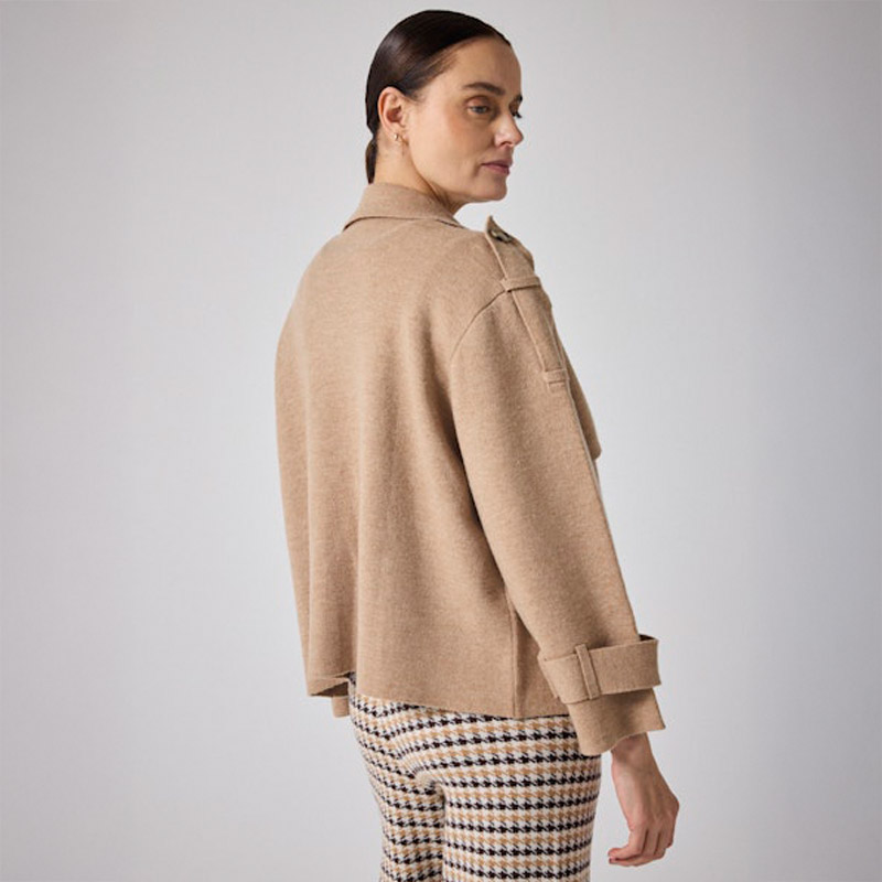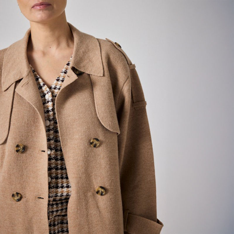 Women's short trench coat, an emblematic piece of the season, combining style and elegance..
