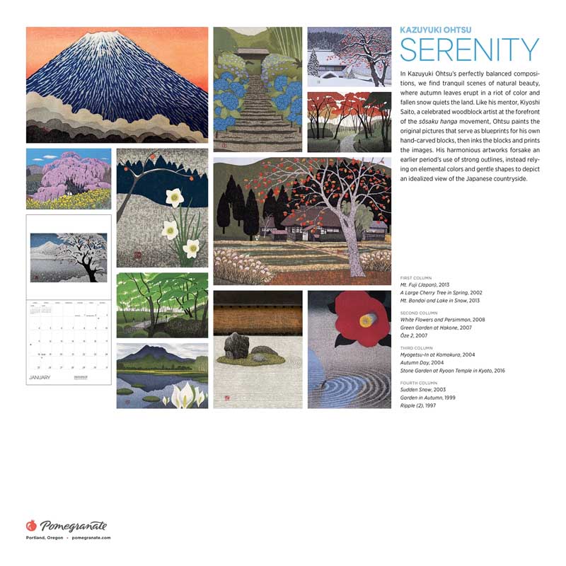 • Pomegranate’s calendars feature exclusive selections of art from museums and artists around the world