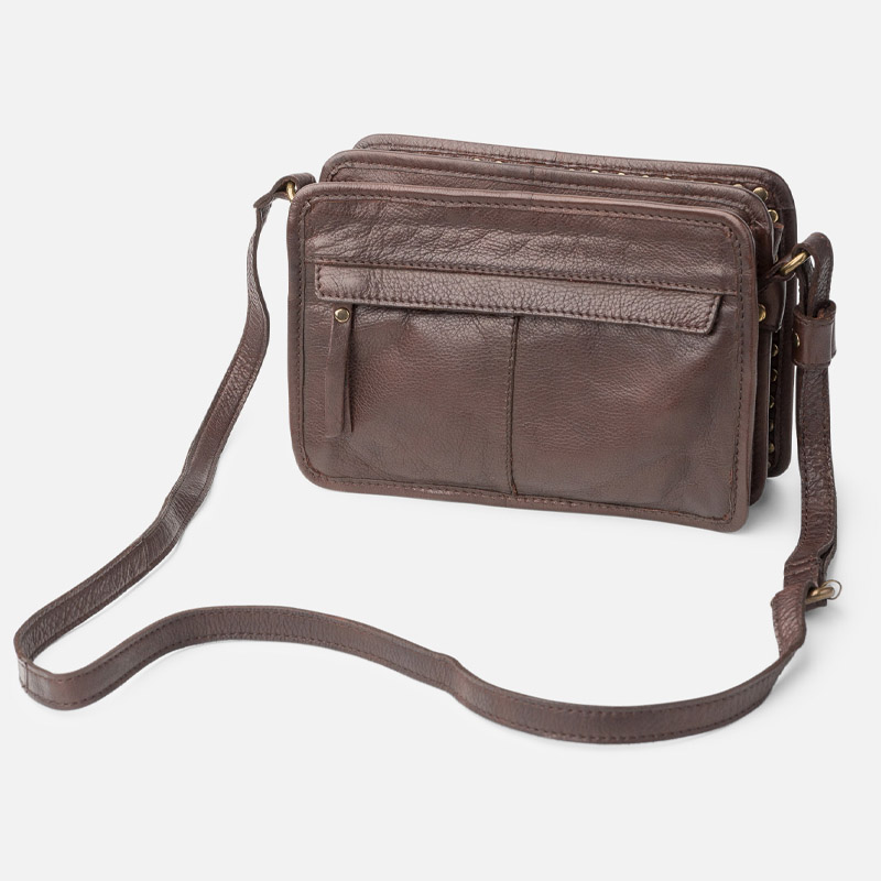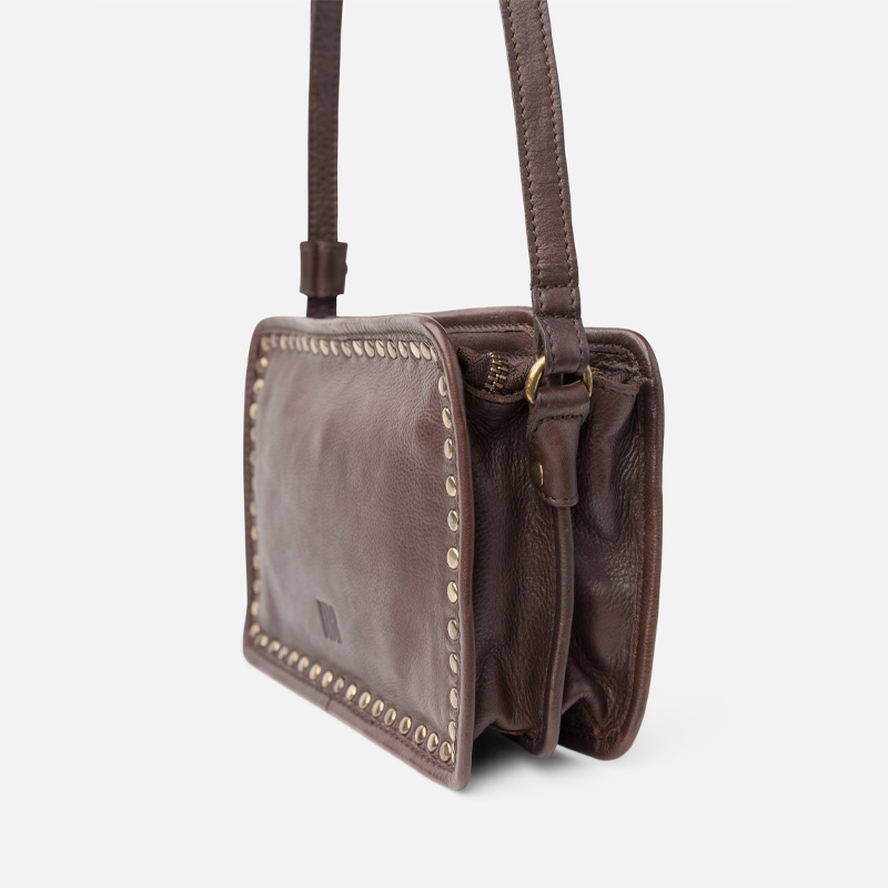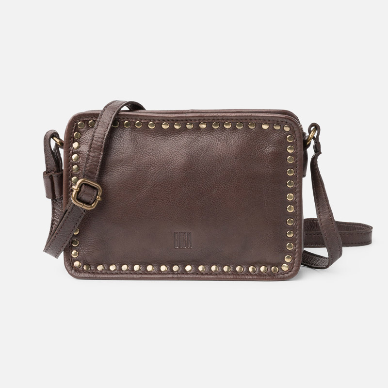 BIBA Rockwall Leather Cross Body Handbag Dark Brown