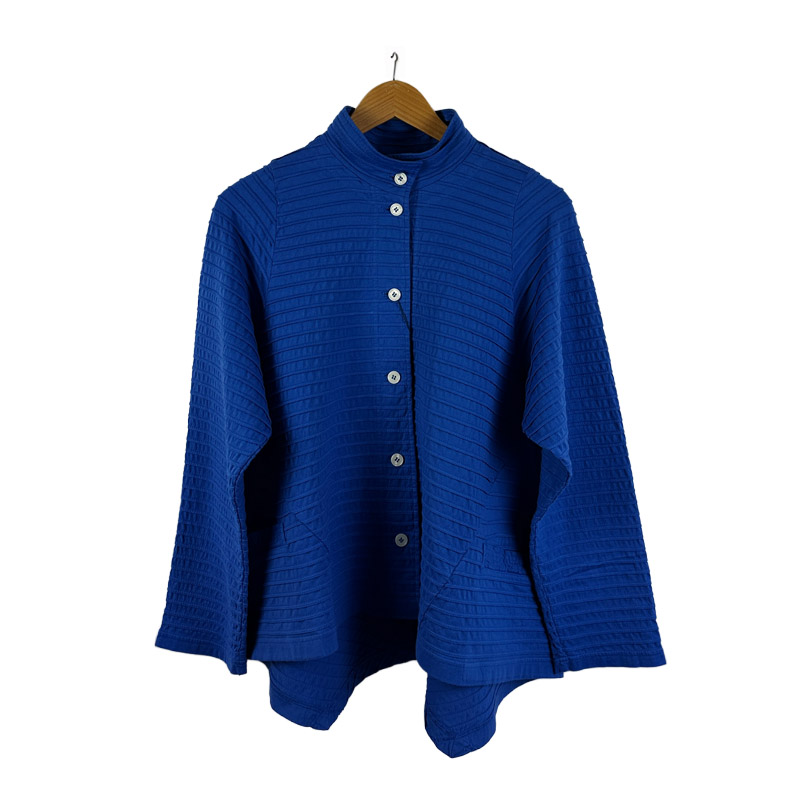 Yacco Maricard's cotton jersey jackets with the signature pintucking are the perfect standby to put on over dresses, pants or skirts when you just don't know what to wear. They don't crease and are machine washable so are also perfect travelling companions as they are truly trans-seasonal.