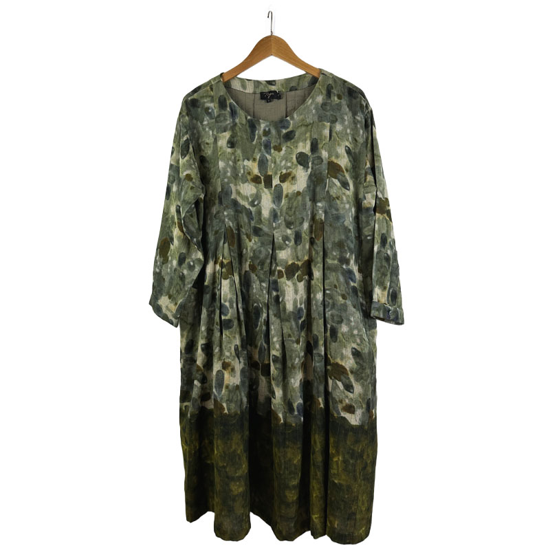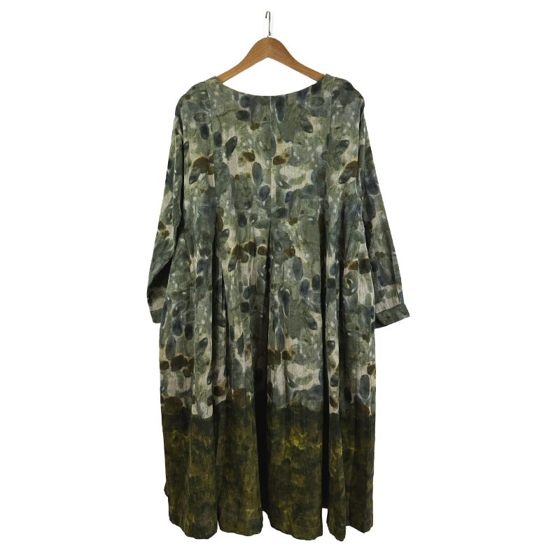 Lovely dress in woven wool fabric. Digital print in beautiful soft shades of green, blue and brown. Light yet warm and comfortable to wear for cold weather.