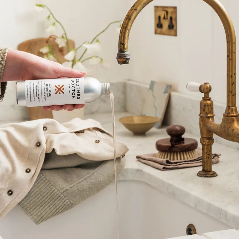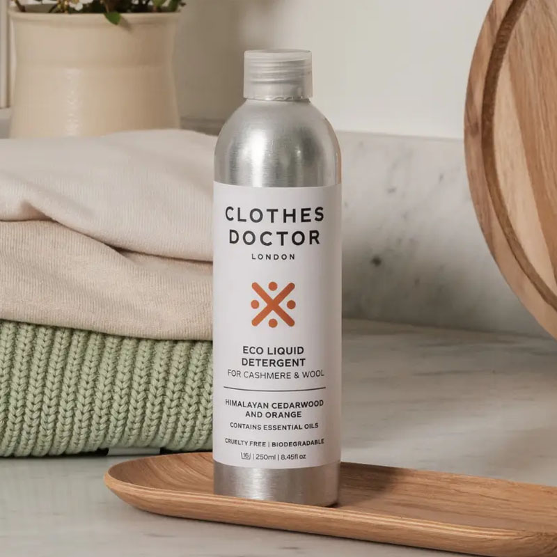 Jumper lost its joie de vivre? Make an appointment with our Cashmere & Wool Detergent. The Clothes Doctor's expertly formulated Cashmere & Wool Detergent uses a gentle and softening formula that extends the life of your knitwear. It is lightly scented with Himalayan Cedarwood and Orange oil to provide natural moth defence while doing your laundry. The perfect alternative to dry cleaning.