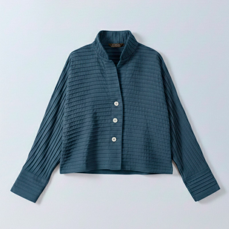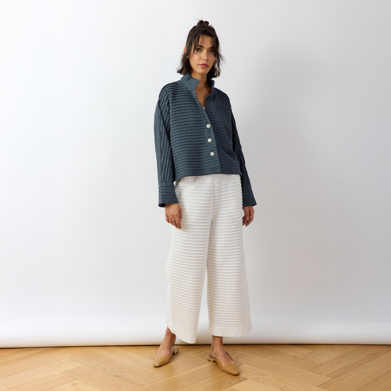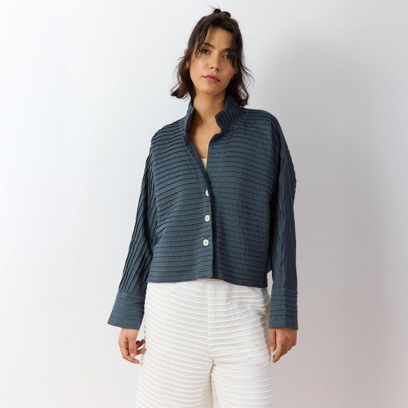 Yacco Maricard's cotton jersey jackets with the signature pintucking are the perfect standby to put on over dresses, pants or skirts when you just don't know what to wear. They don't crease and are machine washable so are also perfect travelling companions as they are truly trans-seasonal.