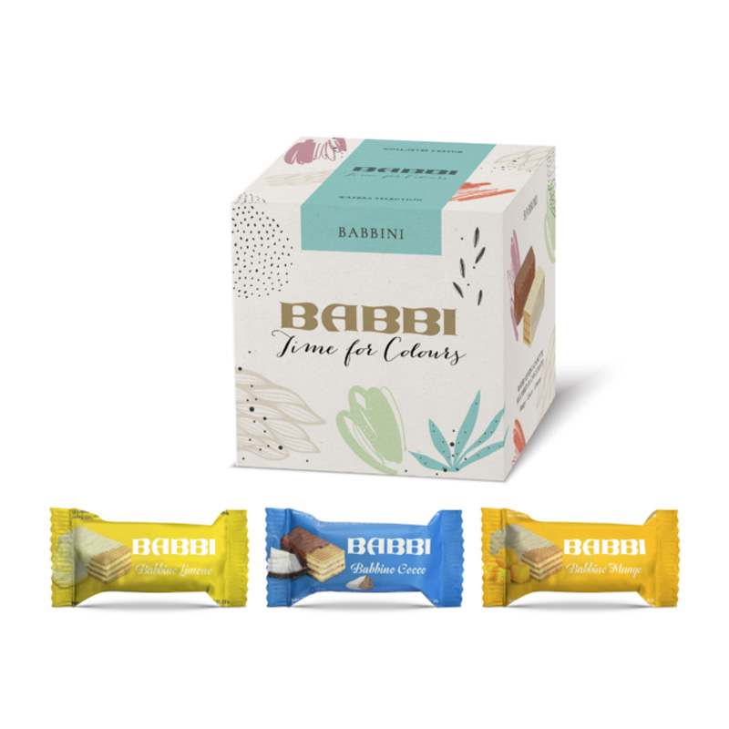A new colourful line: ‘Time for Colours’, which invites you to taste ten delicate mini wafers in the irresistible Lemon, Coconut and in the brand new Mango flavor. Each bite offers surprising nuances and exotic flavors.