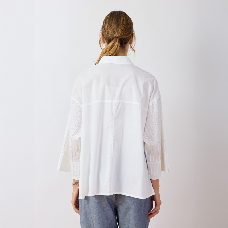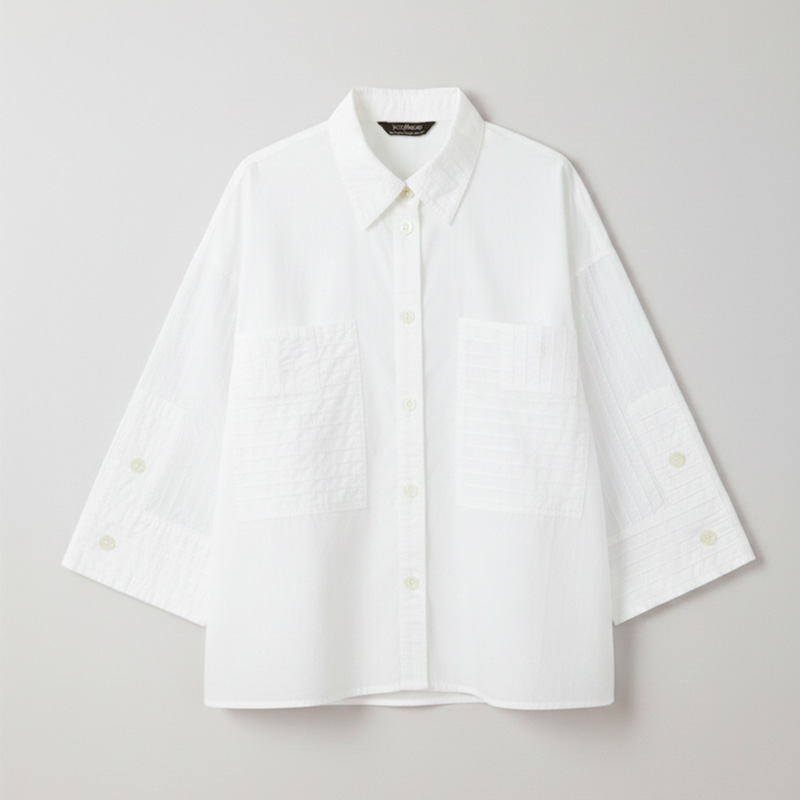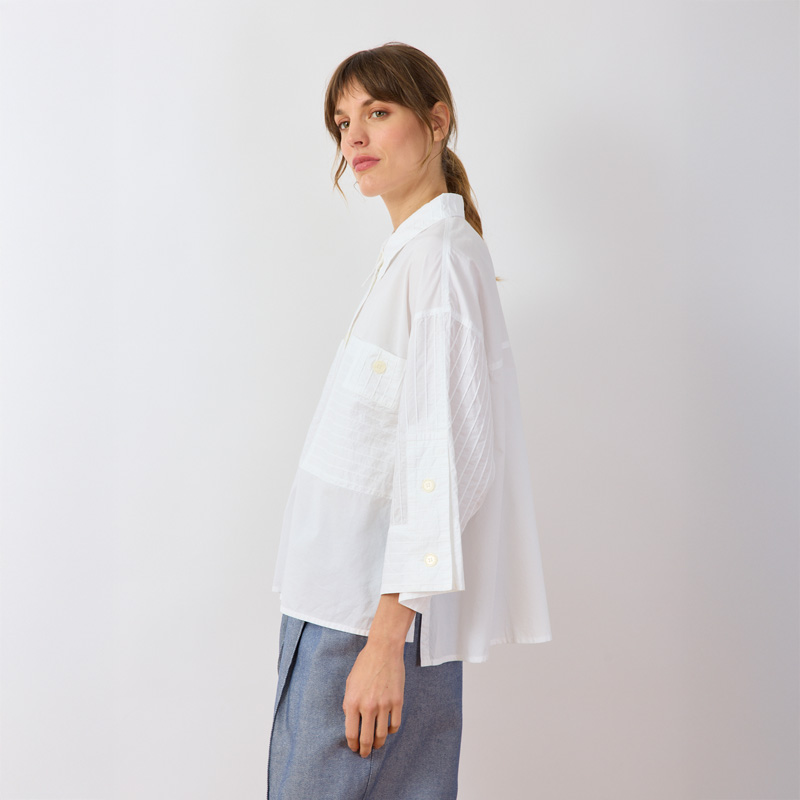 Crafted from soft cotton lawn and cut to a bold width, balanced by its front length, the generously-cut Oba Shirt features drop shoulder seams for a swing fit that hangs longer at the back. Pintuck work is concentrated on the generous three-quarter sleeves, large patch pockets and point collar.