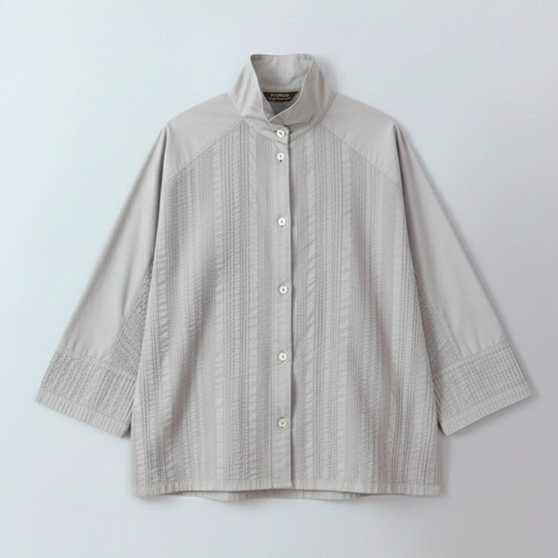 Crafted from soft cotton lawn and cut to a bold width, the one-size, oversized Modan Shirt is defined by thoughtful panel work, combining areas of smooth lawn with precise pintucks. Designed without a shoulder seam, so the pintuck work on the body flows seamlessly into the three-quarter sleeves, finishing at a crisply pintucked cuff. Colour is applied using a garment-dye process, in which fully constructed garments are dyed to create a softer hand feel.