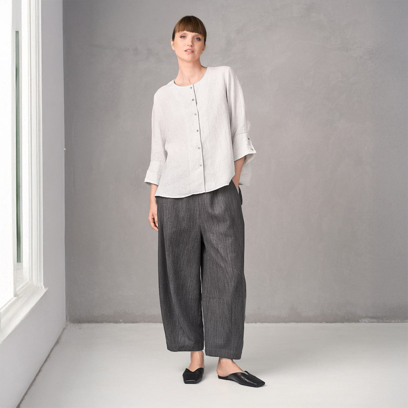 GR Nature epitomises exceptional quality with timeless design. Its beautiful summer linen collection offers an innovative take on the classics. The design is pure and classical, with a high degree of functionality and focus on quality. Shapes are quite neat and are generally most suitable for the trimmer woman.